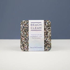 From Cornish brand Liga comes the Beach Clean coasters made from recycled plastics from our oceans and sustainable cork. Easy to wipe clean and use. Each coaster is unique. Comes in set of four.Matching placemat set also available. Size: 100 mm x 100 mm x 2 mm Material: Cork and recycled EVA plastic – saved from our oceans (water and UV resistant)