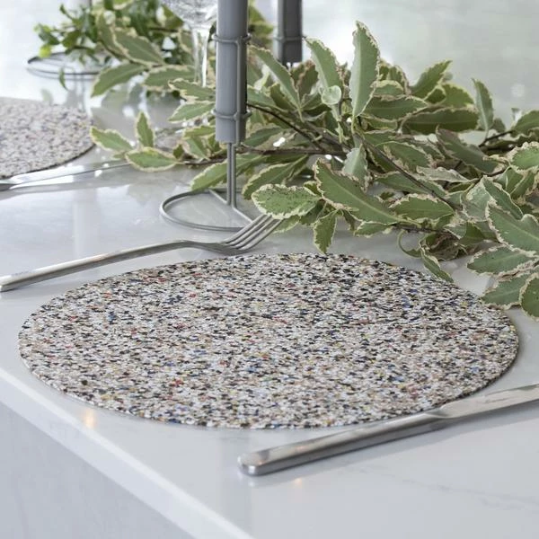 Sustainable Cork + Recycled EVA Plastic saved from our oceans = Beach Clean Collection. Our new material that makes a difference. Set of 4 Beach Clean Placemats – Made with recycled EVA plastics (like flip flops) and eco friendly cork. Easy to wipe clean. Please Note: Due to the process, every batch of mats may differ in colour of EVA plastics making them unique in style and colour! Although the cork is heat resistant the EVA (food safe) plastics are not so therefor please do not use as a hot plate/trivet, however oven warmed plates are absolutely fine! Size: D30 x 0.2 cm – 4 mats in a set.Material: Cork and recycled EVA plastic – saved from our oceans (water and UV resistant)