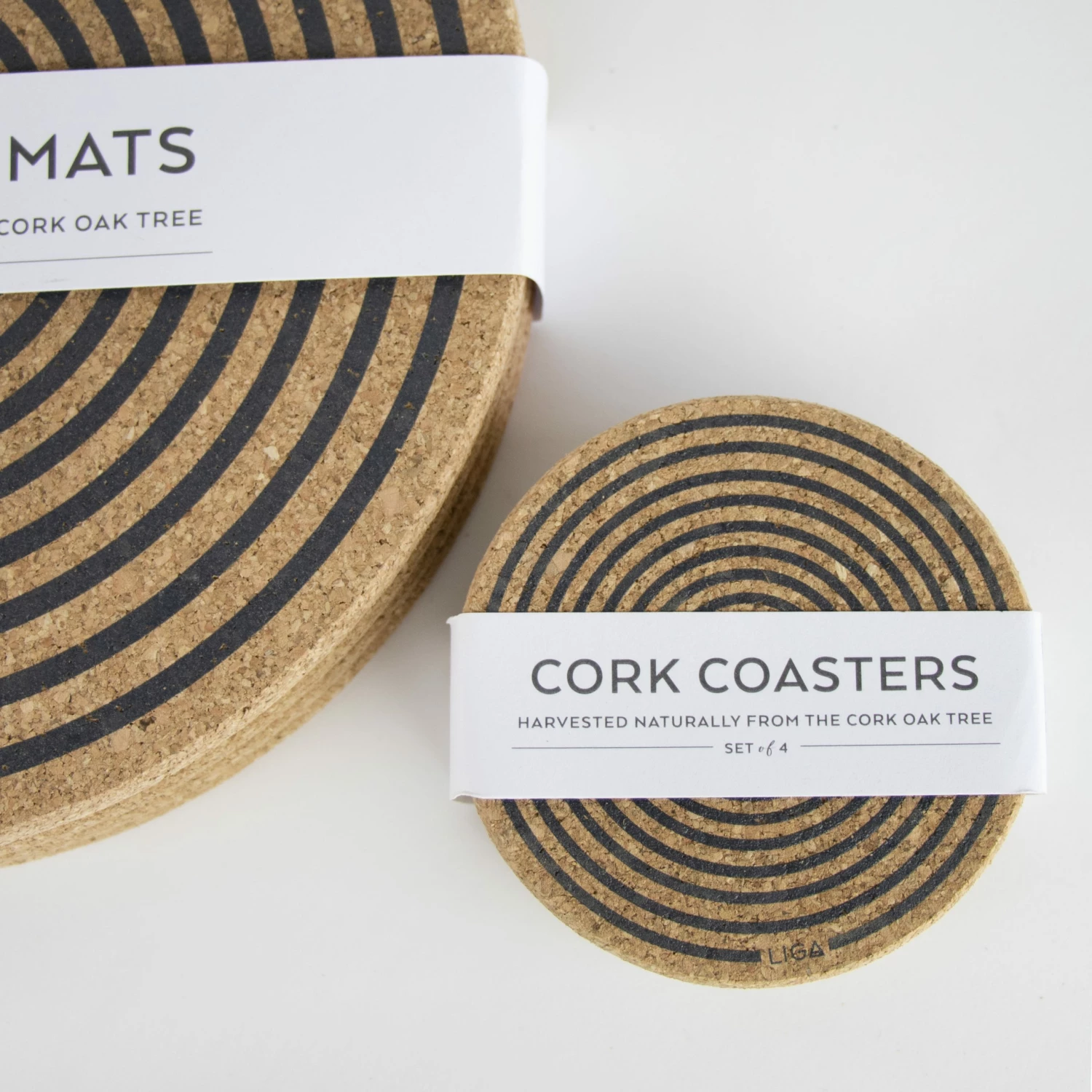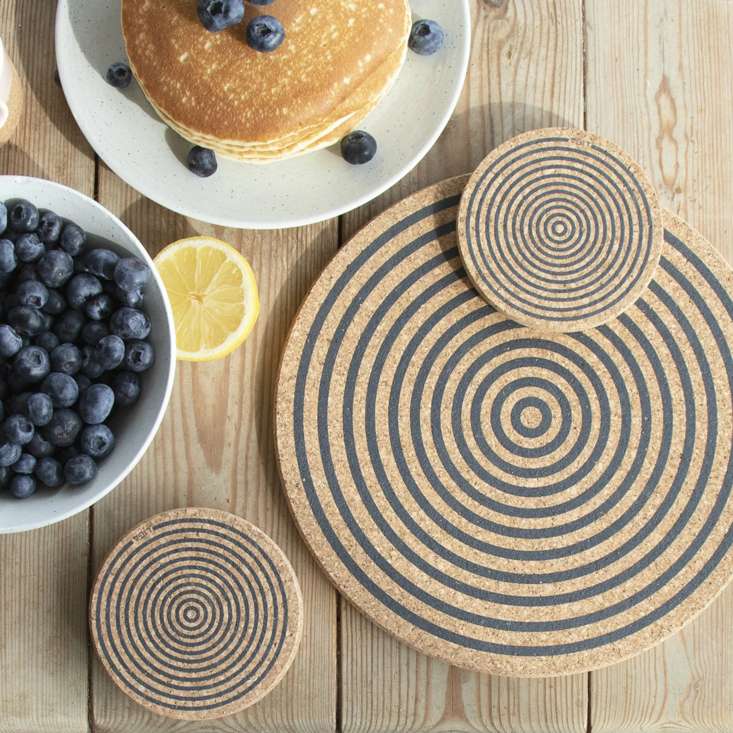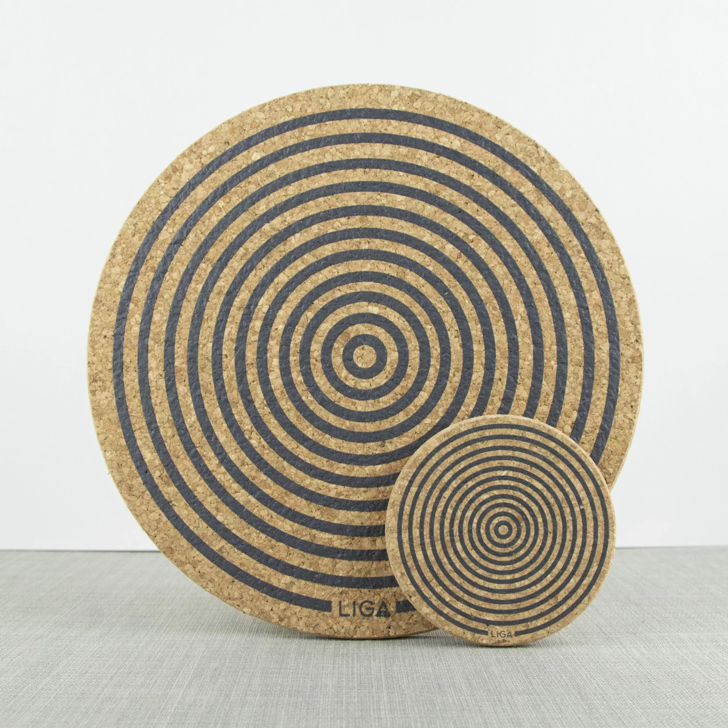 Made from Cork harvested naturally every nine years without harming the cork tree. Placemats and coasters can also be purchased in singles to allow you to mix and match designs or in sets of 4 or 6. Cork is a sustainable, eco material – heat resistant and easy to clean. Hypo-allergenic. Cork Oak Forests provide home and shelter to many endangered species of animals, birds and plants in Portugal. Cork continues to absorb CO2 even as a placemat – amazing. Dimensions: Coaster – 10 x 1 cm