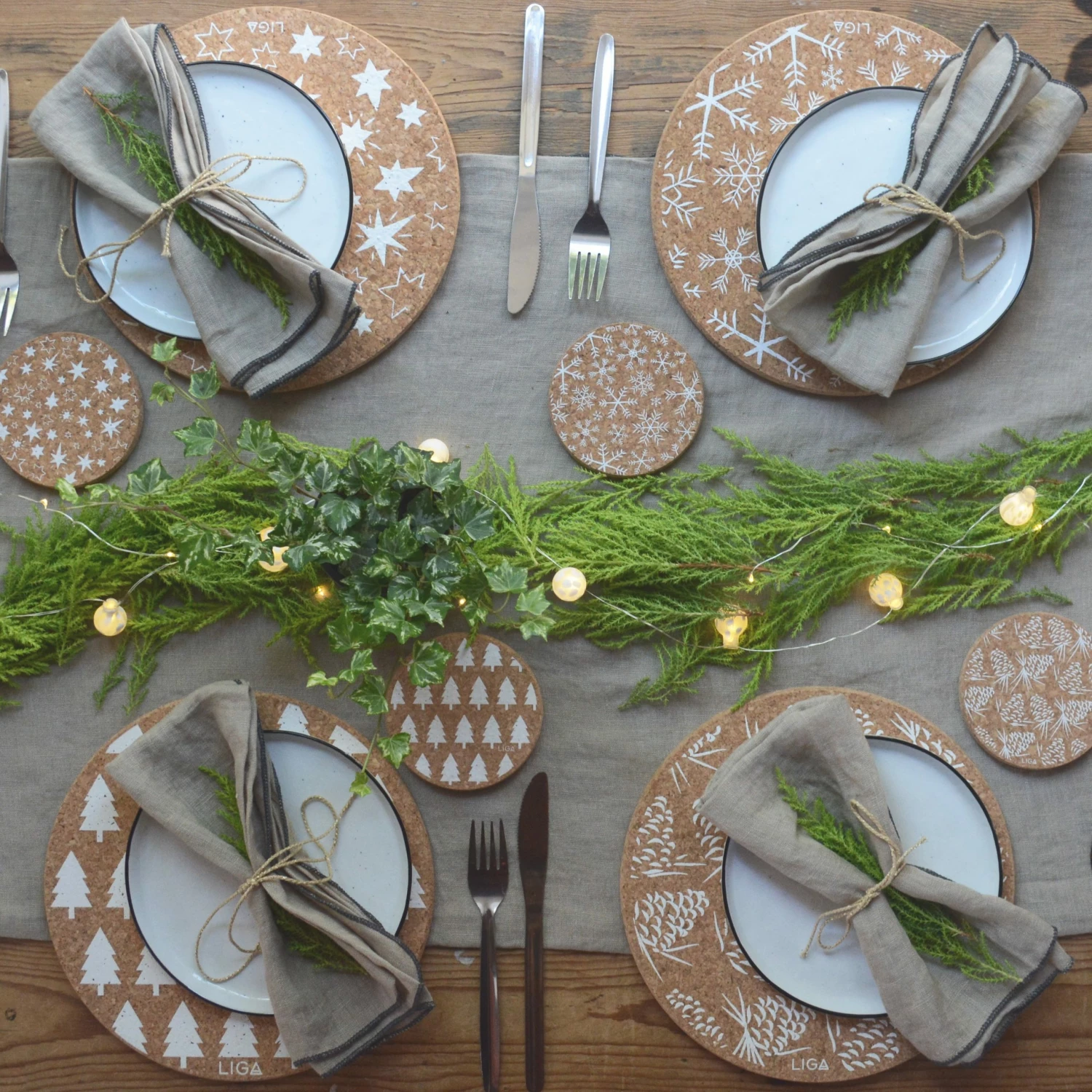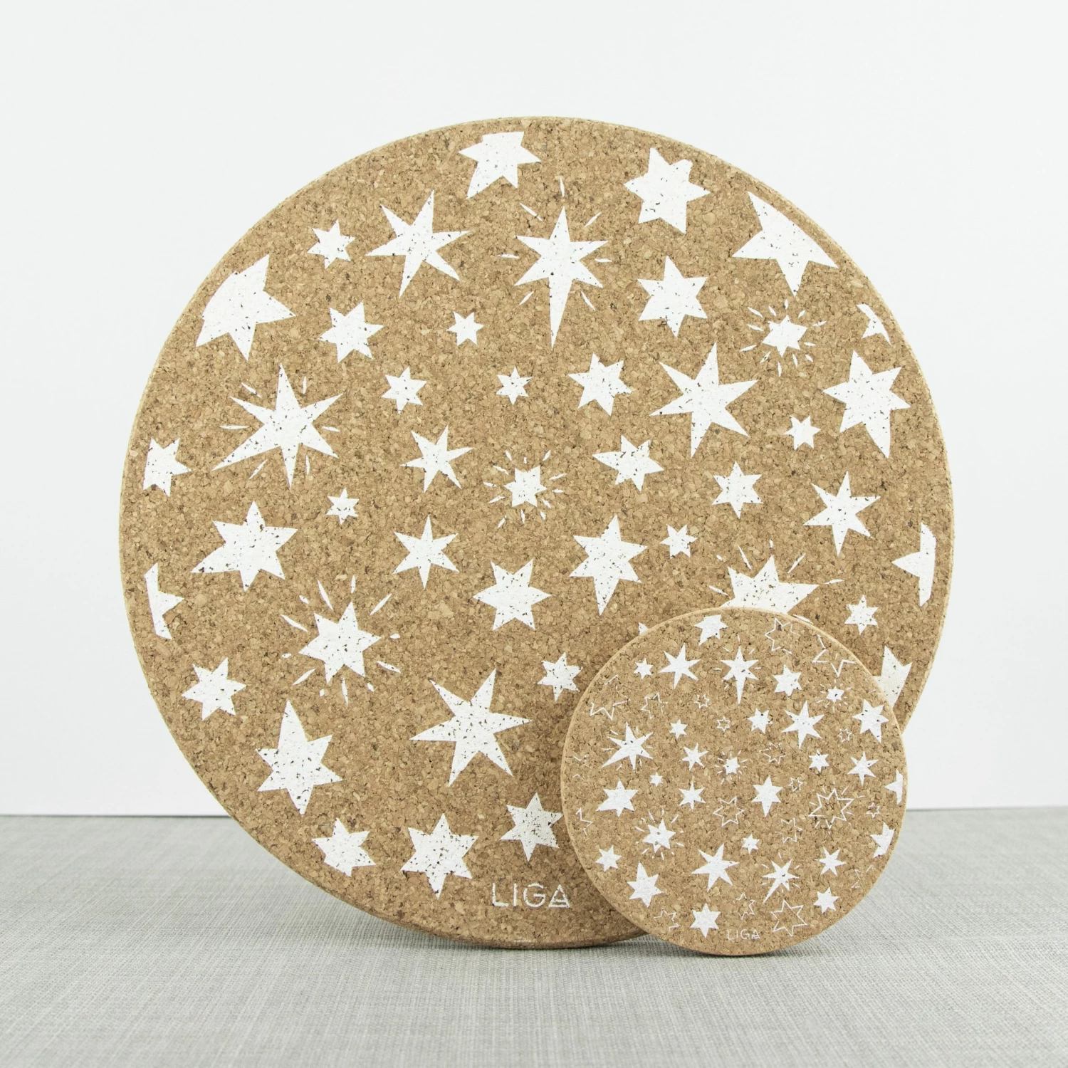 Made from Cork harvested naturally every nine years without harming the cork tree. Placemats and coasters can also be purchased in singles to allow you to mix and match designs or in sets of 4 or 6. Cork is a sustainable, eco material – heat resistant and easy to clean. Hypo-allergenic. Cork Oak Forests provide home and shelter to many endangered species of animals, birds and plants in Portugal. Cork continues to absorb CO2 even as a placemat – amazing. Dimensions: Coaster – D 10 cm x 1 cm
