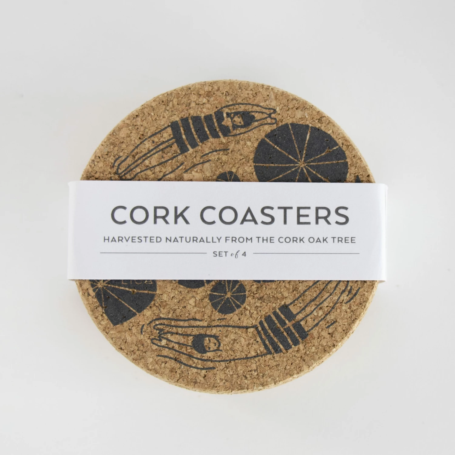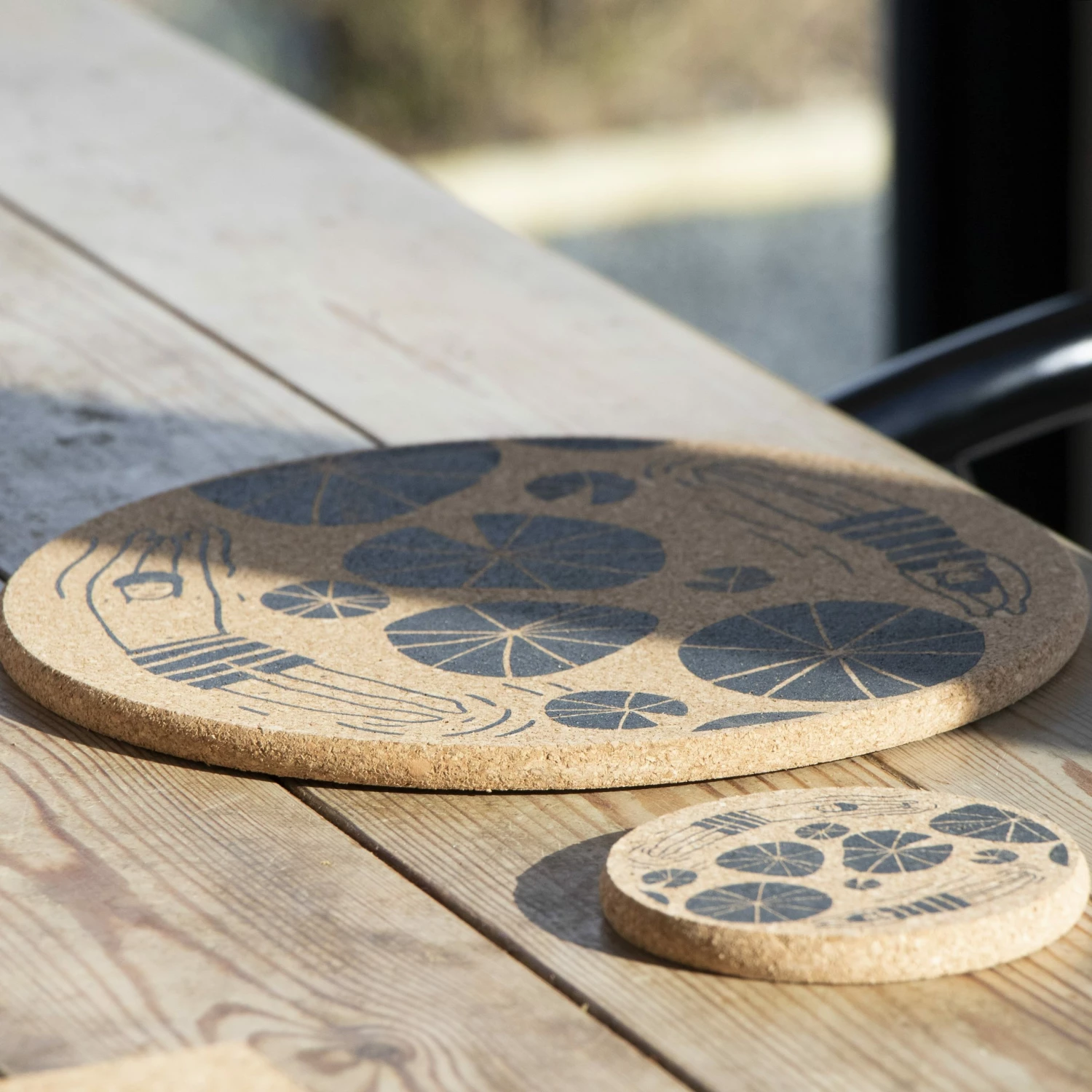 Placemats and coasters made from cork, harvested naturally every nine years without harming the cork tree. Inspiration for our new Wild Swimmers design: Wild swimming, bobbing around in water is becoming more and more popular, summer and winter, rain or shine. To celebrate all those brave hearts who smile through the shivering. Life is for living…. swimming. Placemats and coasters can also be purchased in singles to allow you to mix and match designs or in sets of 4 or 6. Cork is a sustainable, eco material – heat resistant and easy to clean. Hypo-allergenic. Cork Oak Forests provide home and shelter to many endangered species of animals, birds and plants in Portugal. Cork continues to absorb CO2 even as a placemat – amazing. Dimensions: Coaster – D 10 cm x 1 cm Featured in