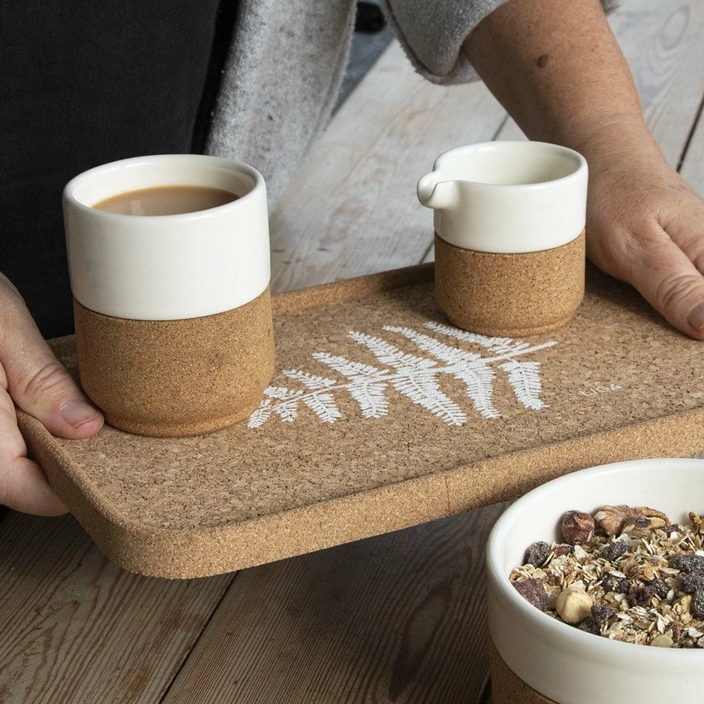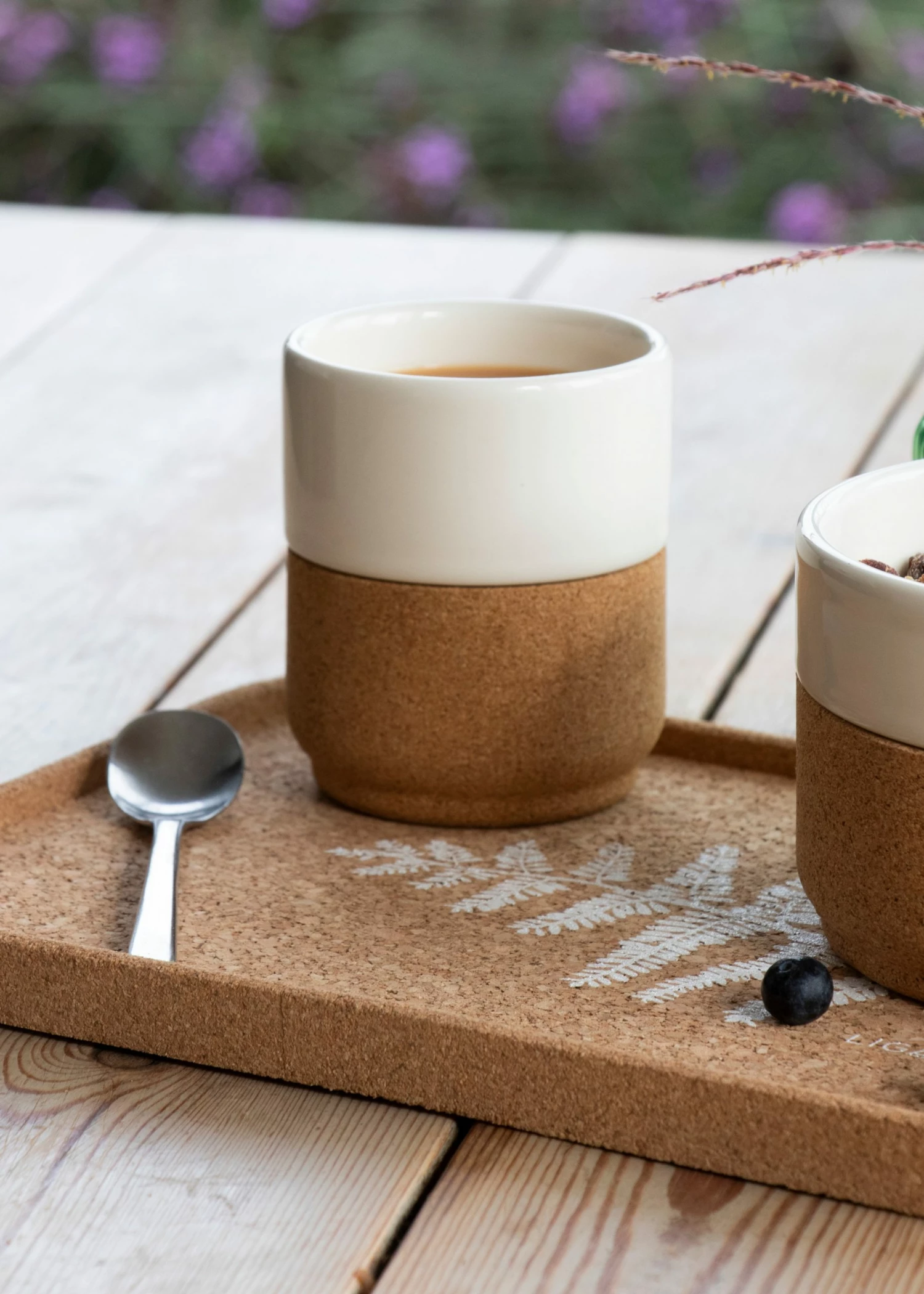 Cork – wonderful, sustainable, practical and all natural. A small cork tray, perfect for holding your beverages, stylish, durable and easy to clean- just wipe down with water. Size: 30cm x 20cm Material: Cork