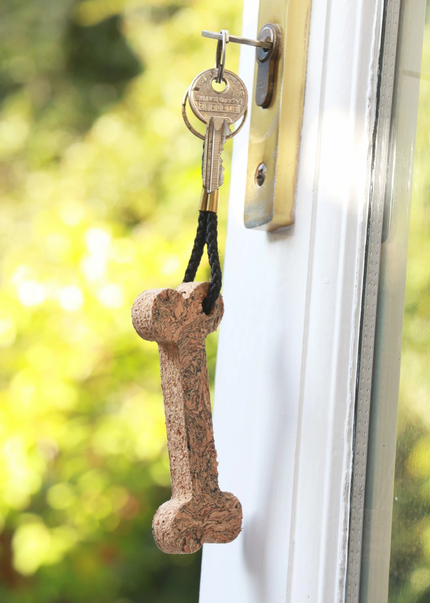 Bone Cork Keyring in ice grey Marbled or Plain. Carry your keys the conscious way, keeping them accessible and safe at all times. Our cork keyrings are tactile, practical, waterproof and made from a sustainable, natural, renewable material. They float, if not overloaded, making them a great accessory for anyone who loves being on the water. The perfect eco gift! Our ice grey cork is naturally harvested from the cork oak tree, every nine years, without harm. This means we can source it sustainably, preserving the habitat of many endangered animals, birds and plants. Size: 10 x 4.5 x 1 cm (not inc. rope). Other floating cork keyrings are available.