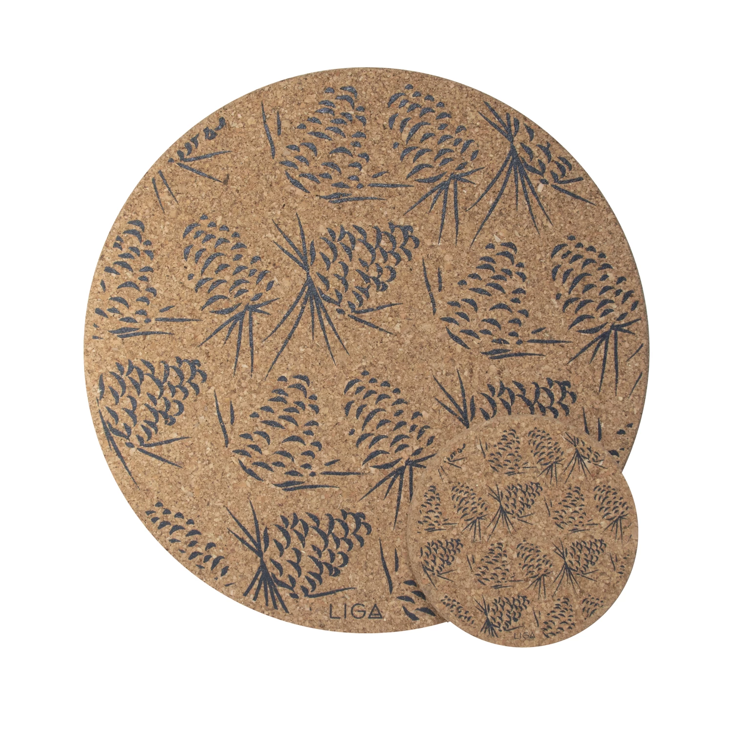 Made from Cork harvested naturally every nine years without harming the cork tree. Placemats and coasters can also be purchased in sets of 4 or 6. Cork is a sustainable, eco material – heat resistant and easy to clean. Hypo-allergenic. Cork Oak Forests provide home and shelter to many endangered species of animals, birds and plants in Portugal. Cork continues to absorb CO2 even as a placemat – amazing. Dimensions: Placemat – D 25 cm x 1 cm
