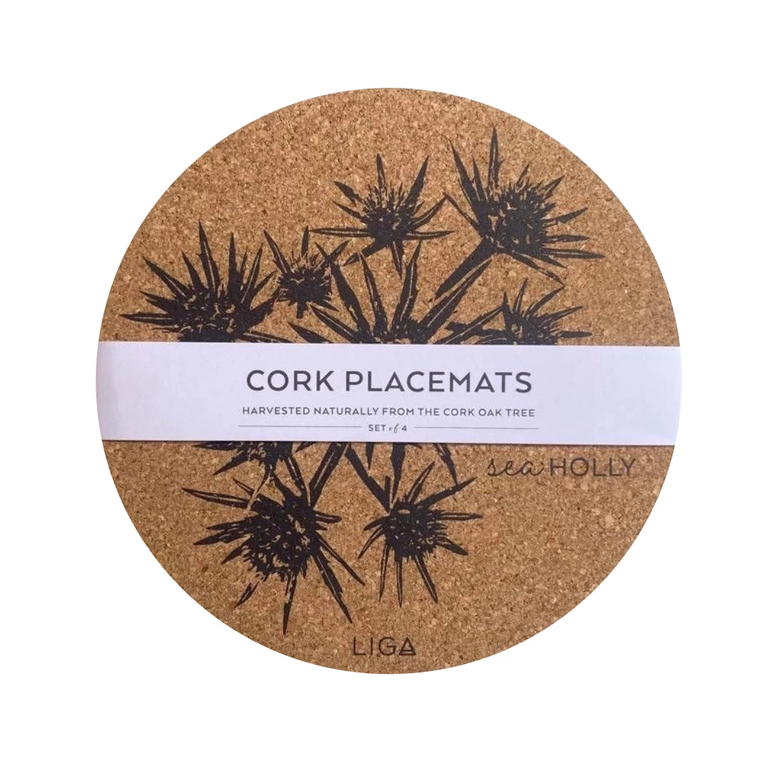Made from Cork harvested naturally every nine years without harming the cork tree. Placemats and coasters can also be purchased in singles to allow you to mix and match designs or in sets of 4 or 6. Cork is a sustainable, eco material – heat resistant and easy to clean. Hypo-allergenic. Cork Oak Forests provide home and shelter to many endangered species of animals, birds and plants in Portugal. Cork continues to absorb CO2 even as a placemat – amazing. Dimensions: Placemat – D 25 cm x 1 cm
