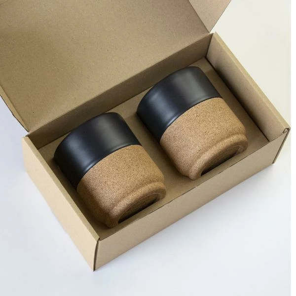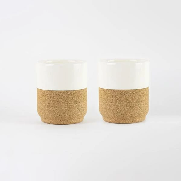 Set of 2 Coffee/Tea Mugs, beautifully packaged in a recycled card gift box with sleeve. Cork + Pottery = Earthware Collection Mug – not only feels good to drink out of, but good to hold – keeping warm drinks warmer for longer. A contemporary collection designed and made in Portugal. Cork and Ceramics both have a strong tradition in Portuguese History. Mug Size: 95 x 78 mm The Cork and Ceramic parts sit well together and easily come apart for practicality and ease of cleaning. Ceramic – Dishwasher Friendly & Cork – hand wash.