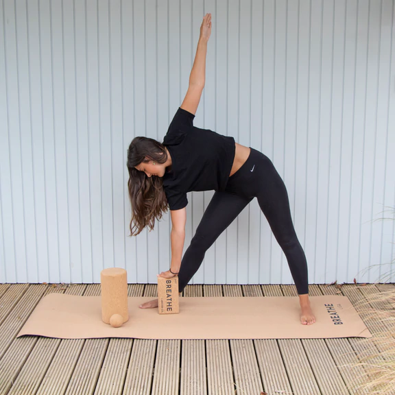 Cork yoga mat made with eco friendly cork and a PU backing.