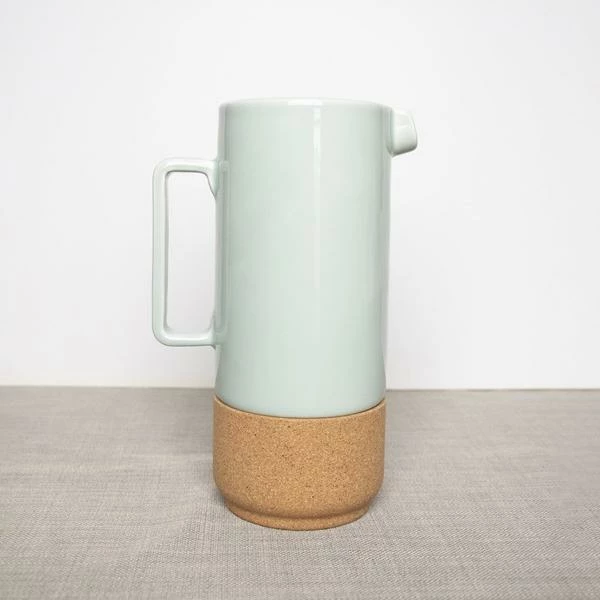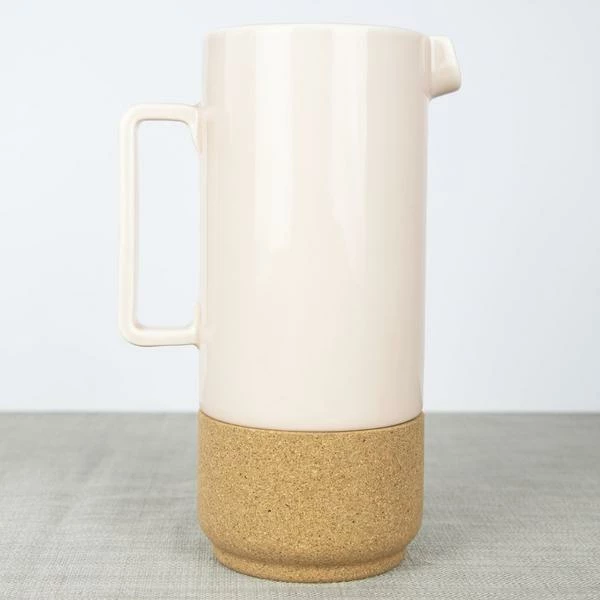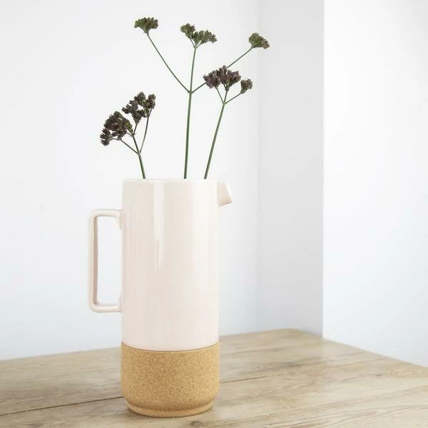 Cork + Pottery = Earthware Collection Tall Water Jug or Vase. The Cork and Ceramic parts sit well together and easily come apart for practicality and ease of cleaning. Ceramic – Dishwasher Friendly & Cork – handwash. A contemporary collection designed and made in Portugal. Size: 222 x 96 mm (140 inc handle & spout). Also available in Rose Pink, Aqua & Matt Black.