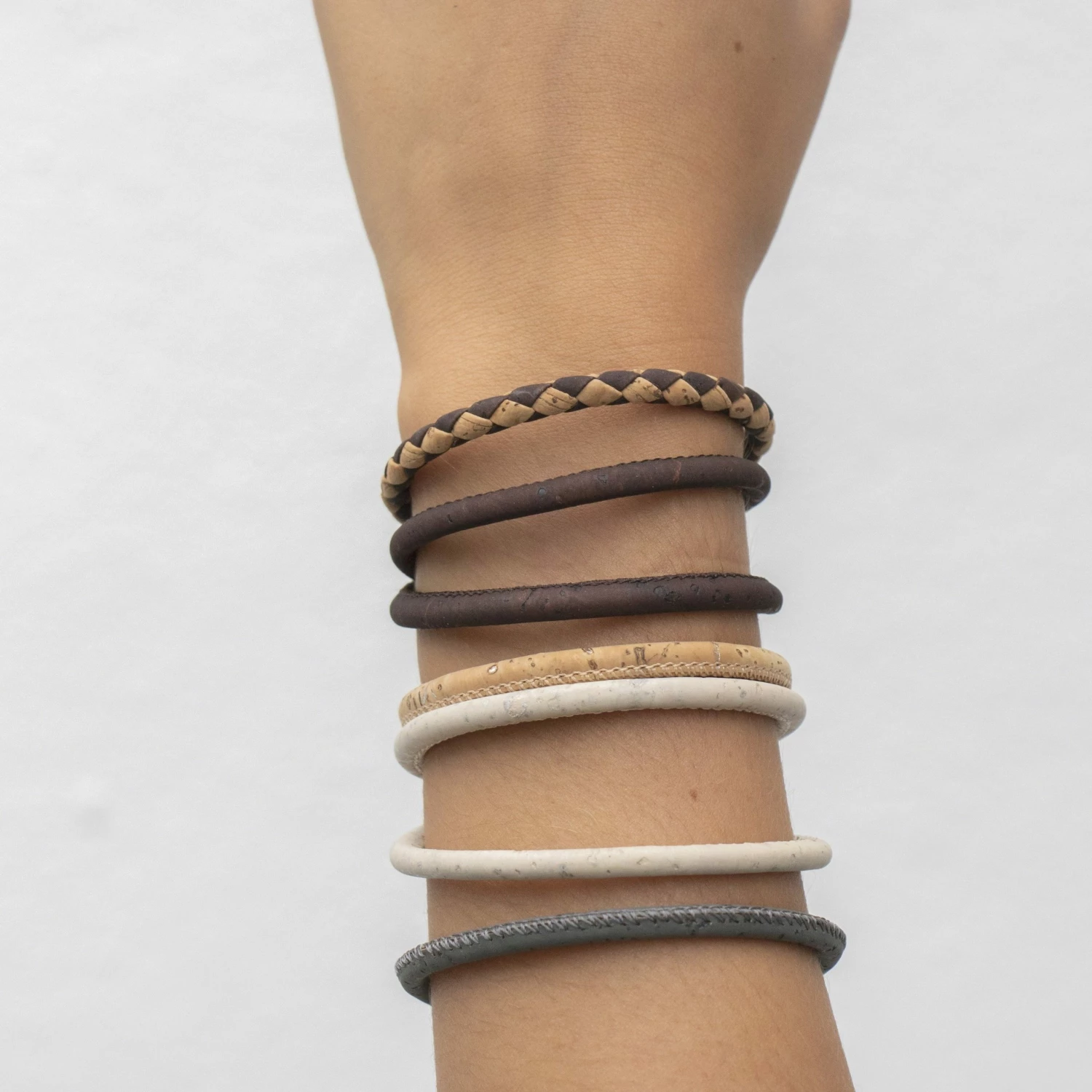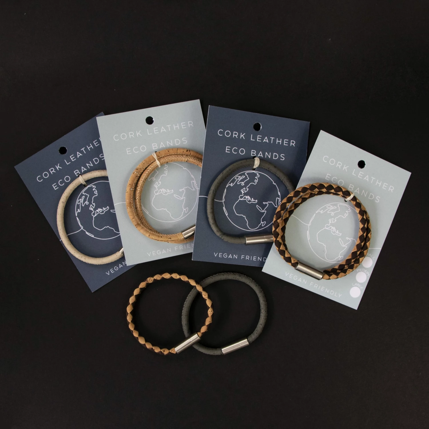 Handmade in Cornwall from Vegan friendly Cork Leather – for him and for her. Choose from 5 colour-ways in three sizes in a single or double wrap. Comfortable to wear with a strong magnetic clasp. Band length when laid flat Small – 35 cm Medium – 39 cm Large – 43 cm Smoked | Twist | Grey | White | Natural CORK Simple recycled card packaging | Single wrap £10.95 in all sizes and colours | Double Wrap £12.95