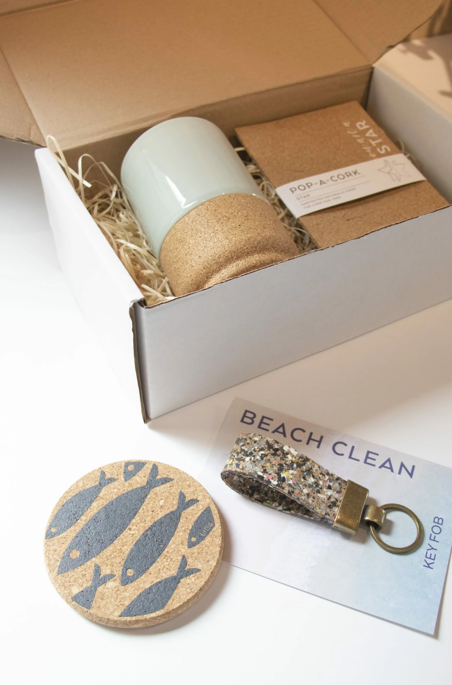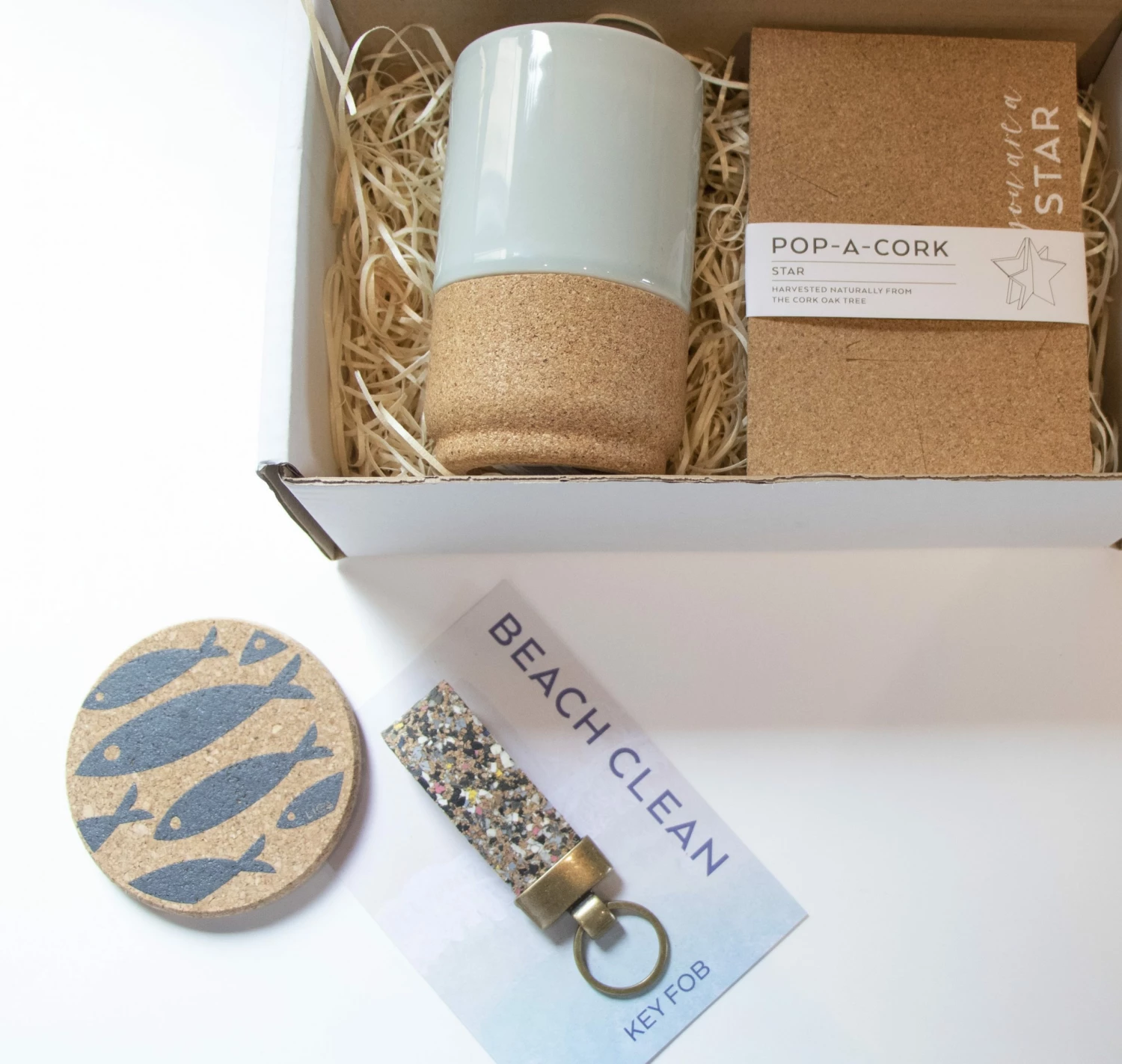 We’ve collated some of our Staff Favourites for our Father’s Day Eco Gift Hamper . . . Choose from two colour options: Black – Large Matt Black Cork Mug, You’re A Star Pop A Cork, Dark Cork Key Fob & Black Hole Coaster. Blue – Large Aqua Cork Mug, You’re A Star Pop A Cork, Beach Clean Key Fob & Grey Fish Coaster