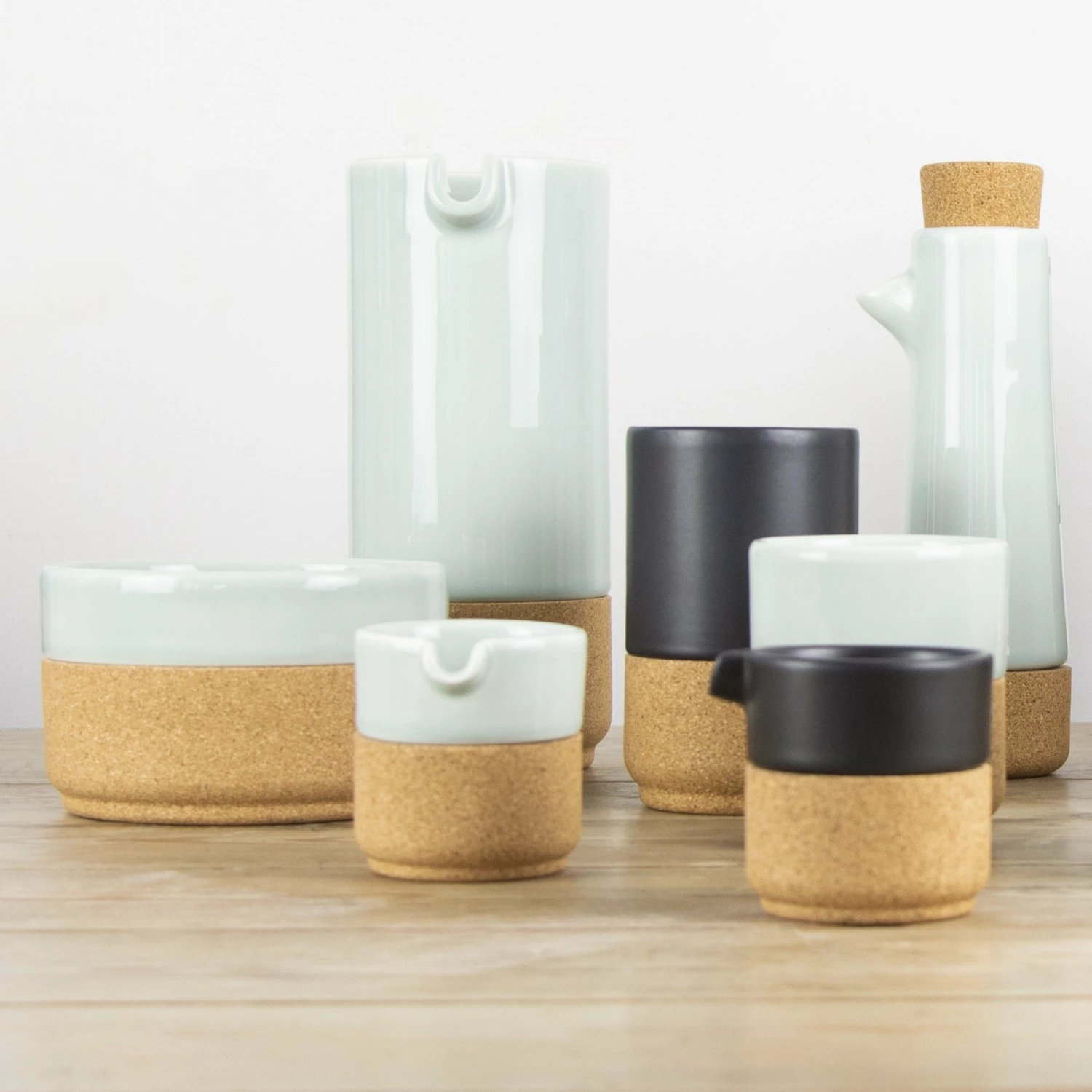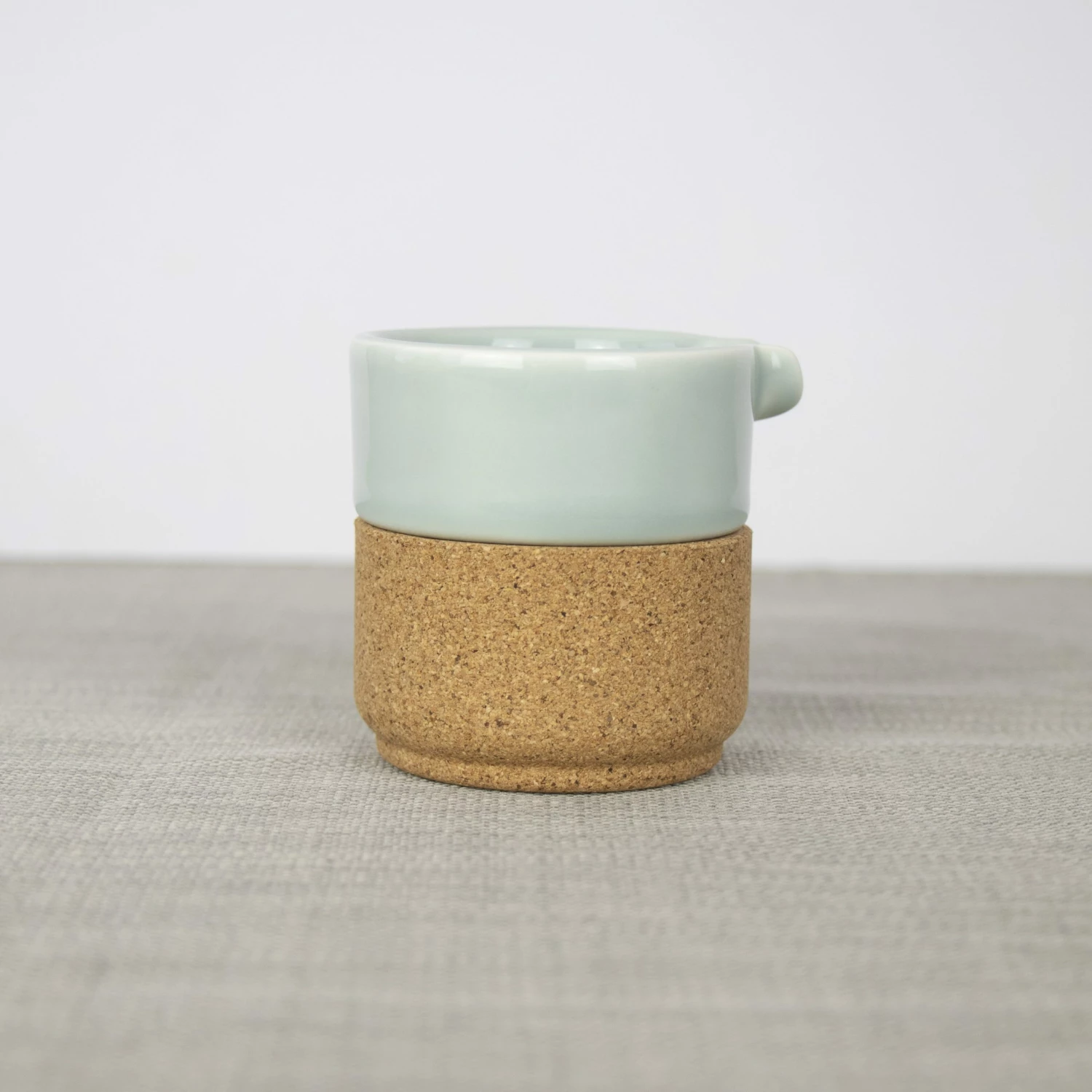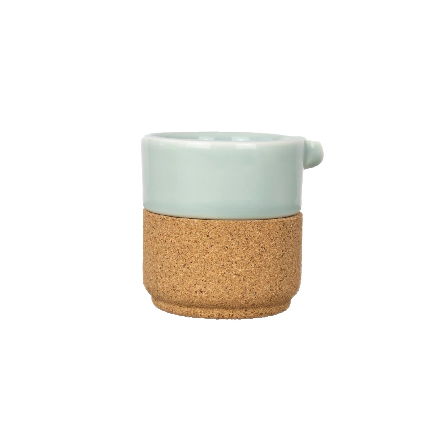 Cork + Pottery = Earthware Collection Milk Jug The Cork and Ceramic parts sit well together and easily come apart for practicality and ease of cleaning. Ceramic – Dishwasher Friendly & Cork – handwash. A contemporary collection designed and made in Portugal. Size: 70 x 66 (75 inc spout) mm Also available in Storm Grey, Cream, Pink & Matt Black.
