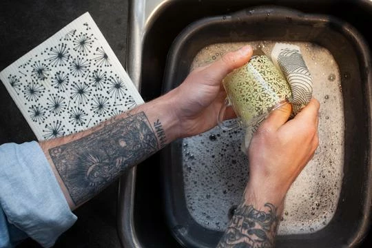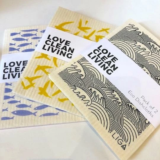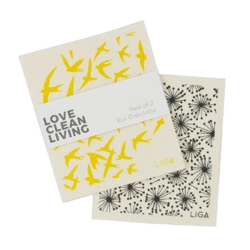 Super absorbent dishcloths/sponges in two designs; black dandelion and yellow swallows. Eco friendly and compostable.