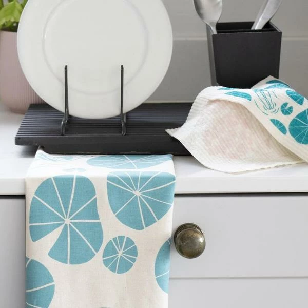 Liga’s Tea Towels are cotton and are all made with 100% organic cotton which is certified ‘Climate Neutral’ by EarthPositive. That means they’re made solely with renewable green energy from wind and solar power. Details: – Hand Printed in Cornwall – Size: 70cm x 50cm – Material: 100% Organic Cotton – wash at 40c