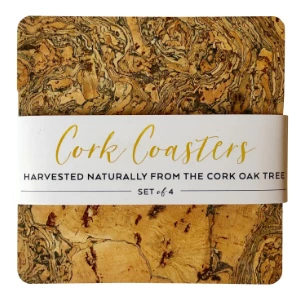 The cork material absorbs moisture well, and the square shape is a nice change from the usual round coasters.