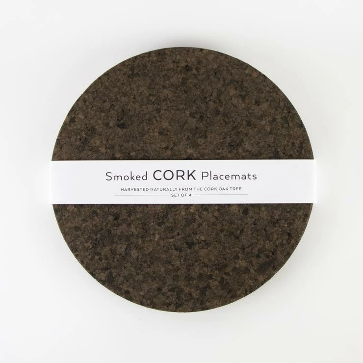 Add depth to your dining with this Smoke Cork Placemat Set. Sustainable, practical and all natural they are smoked to bring out gorgeous dark tones while also highlighting flecks of warm brown. Cork is sustainable. A natural product that’s harvested from tree bark every seven years, without harming the cork tree. It’s renewable and recyclable. It’s also extremely practical being naturally impermeable to water, its easy to wipe clean and can also act as a great insulator. Materials and Dimensions: Smoked Cork, 25 cm in diameter and 10 cm in depth