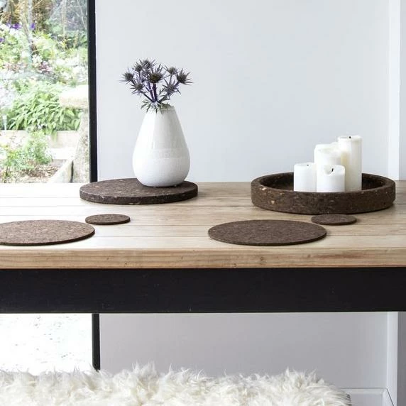 Smoked Cork Placemat Set of 4 Sustainable, environmentally friendly, practical and all natural it’s smoked to bring out gorgeous dark and warm tones. With natural water impermeability qualities they are quick and easy to clean. With natural insulating properties and water impermeability cork is the perfect heatproof material for keeping your table, or kitchen surfaces safe. The sustainable cork, is harvested once every nine years without felling trees. Enhance your home while allowing endangered wildlife to keep theirs. Size: 25 x 0.6 cm per mat Matching smoked sustainable homeware available.