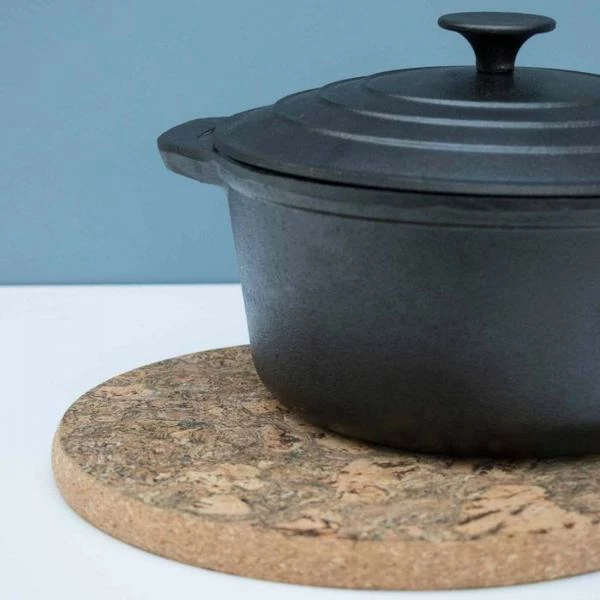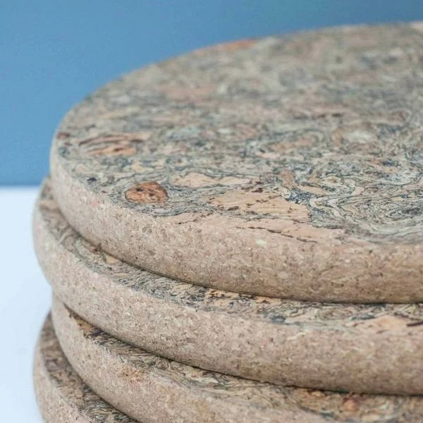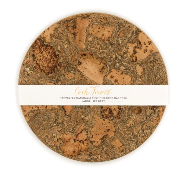 Chunky block table trivet in ice grey marbled cork. The cork has been smoked to give the beautiful marbling effect. The 2cm depth of this product makes it the perfect heat proof trivet for the table or in the kitchen. Cork trivets are: – Heatproof and shock absorbent to protect your table. – Tactile and lightweight – a joy to hold, stacking easily for tidy storage. – Quick and easy to clean. – Environmentally sustainable for guilt-free style. Made from sustainable cork, which is harvested once every nine years without felling trees. Three Sizes Small: 19 x 2 cm Medium: 25 x 2 cm Large: 30 x 2cm