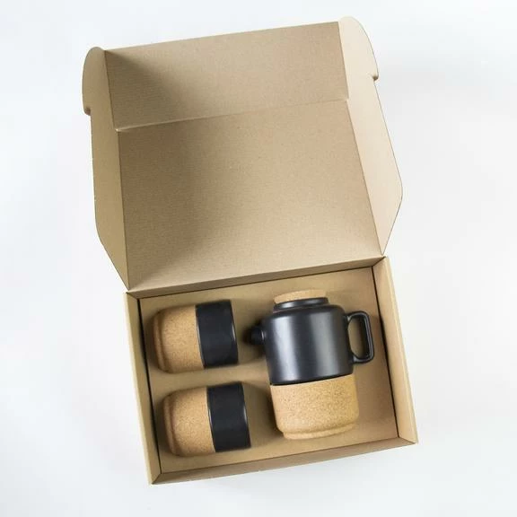 Set of 2 Oil & Vinegar Dispensers, beautifully packaged in a recycled card gift box with sleeve. Cork + Pottery = Earthware Collection A contemporary collection designed and made in Portugal. Cork and Ceramics both have a strong tradition in Portuguese History. Single Dispenser Size: 215 x 75 mm The Cork and Ceramic parts sit well together and easily come apart for practicality and ease of cleaning. Ceramic – Dishwasher Friendly & Cork – hand wash.