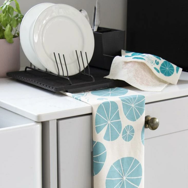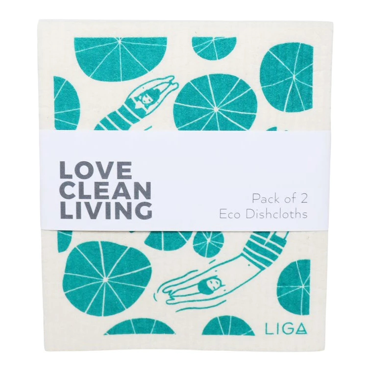 Super absorbent dishcloths/sponges in two designs; blue wild swimming and soft pink hydrangea. Eco friendly and compostable. Just pop in the dishwasher to clean.